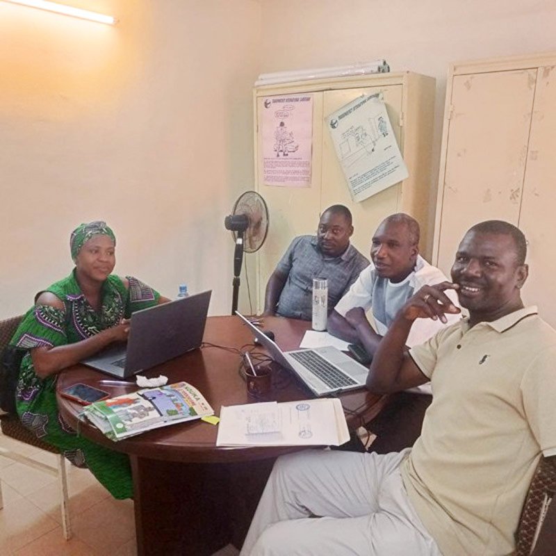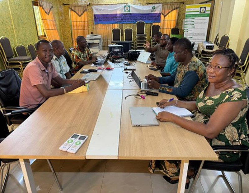 LCapS focal point Wend-Yda Idani conducting the OCA survey with senior staff at the “Association pour la Recherche et la Formation en Agroécologie” (ARFA) in their Eastern Region headquarters in Fada N’Grouma in October 2024 (Source: ACSD photo archive).