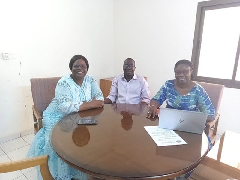 LCapS focal point Moussa Armel Nassouri conducting the OCA survey with the Director (Mme. Traore) and one of her senior staff at the “Cabinet Ingénierie et de Conseil en Développement d’Entreprises” (ICDE) in October 2024 (Source: ACSD photo archive).